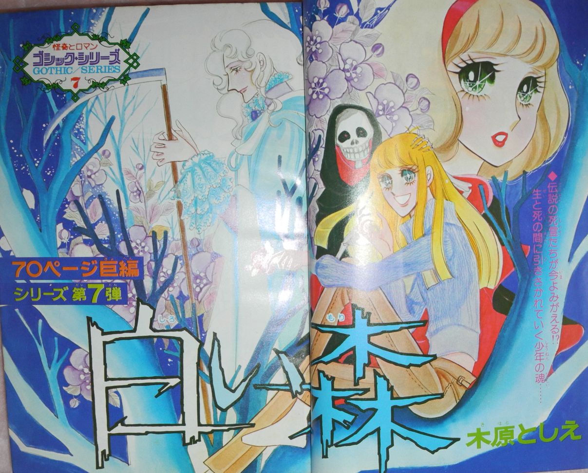 こんばんは皆様、三頌亭です。またアップしっぱなしで申し訳ありません。久々の少女漫画定期便です。これも創刊して間もない「花とゆめ」です。怪奇とロマン・ゴシックシリーズというのがあって1作家読みきりで掲載されていたころです。ゴシックロマンスという言葉がまだ一般的ではなかったころのお話なので後になって三頌亭は驚いています。この号は木原としえさんの「白い森」です。あとは湯村たいこさんや田中雅子さんが懐かしいでしょうか?。写真には載せませんでしたが神坂智子「たそがれ時の風の色」なども掲載されています。神坂さんのごく初期の作品です。