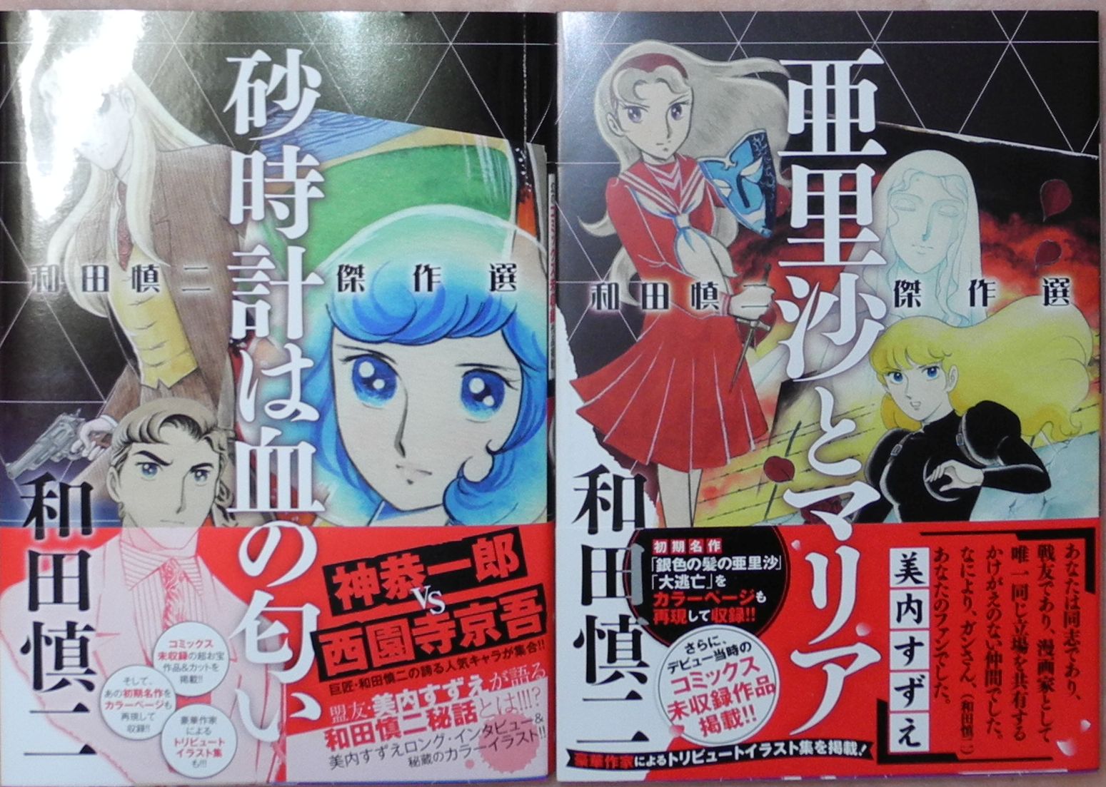 こんばんは、皆様、三頌亭です。和田慎二の初期の傑作選を買ってまいりました。主なところは連載誌で読んだものばかりですが、カラー頁もそのまま再現されているので一つあってもいいかと思い買ってみました。「オレンジは血の匂い」は読むのは久しぶりです。どれも70年代前半の作品ですが、後年の和田慎二の主要キャラクターが出そろっています。「銀色の髪の亜里沙」は今まで何度も紹介いたしましたが三頌亭の大変好きな和田慎二作品です。このあたりの初期作品の絵柄がやっぱりよろしいですね(笑)。